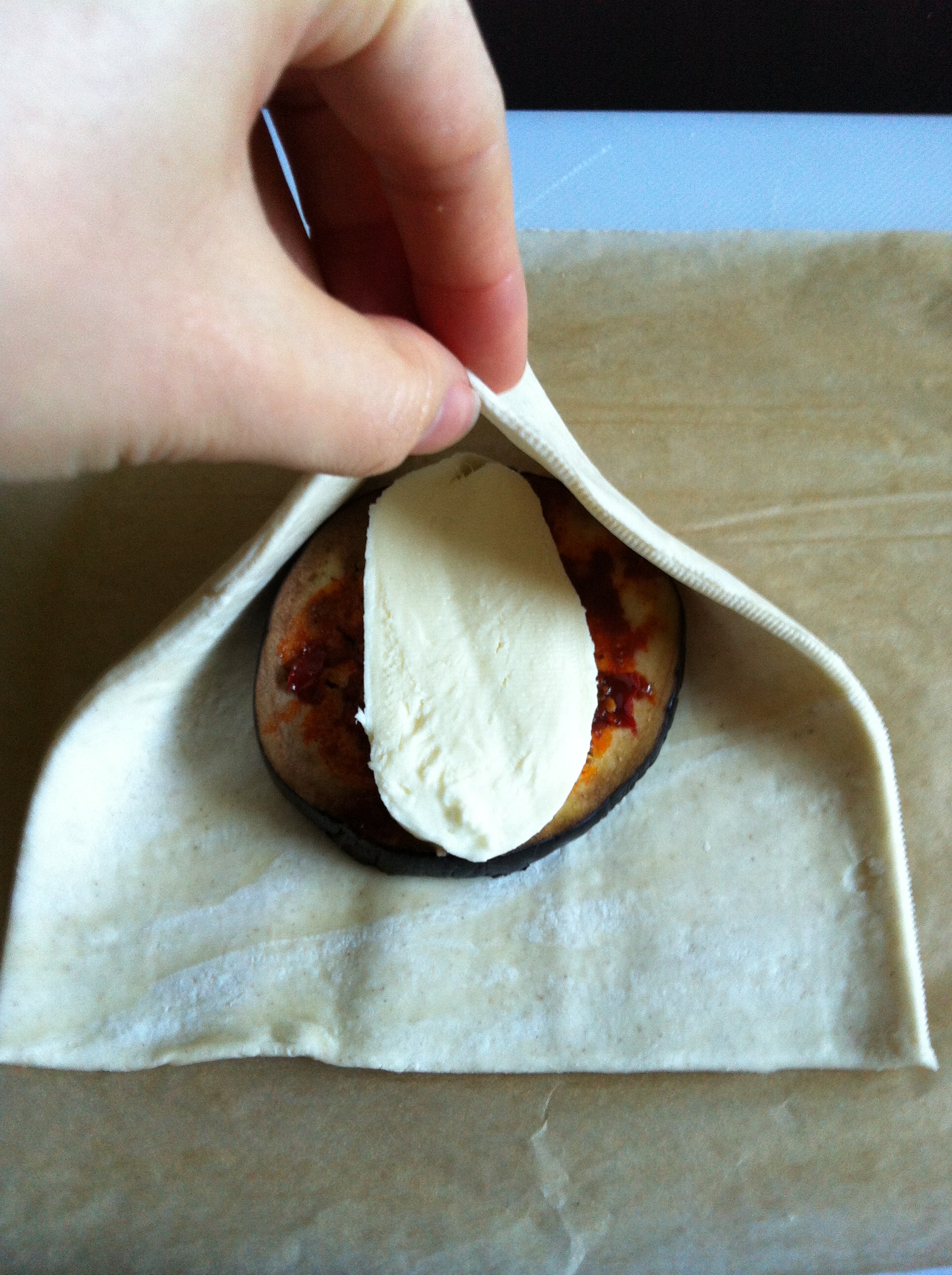 If it isn’t already done, cut the puff pastry into a square. I used reduced fat ready-rolled puff pastry, but go with what you like.