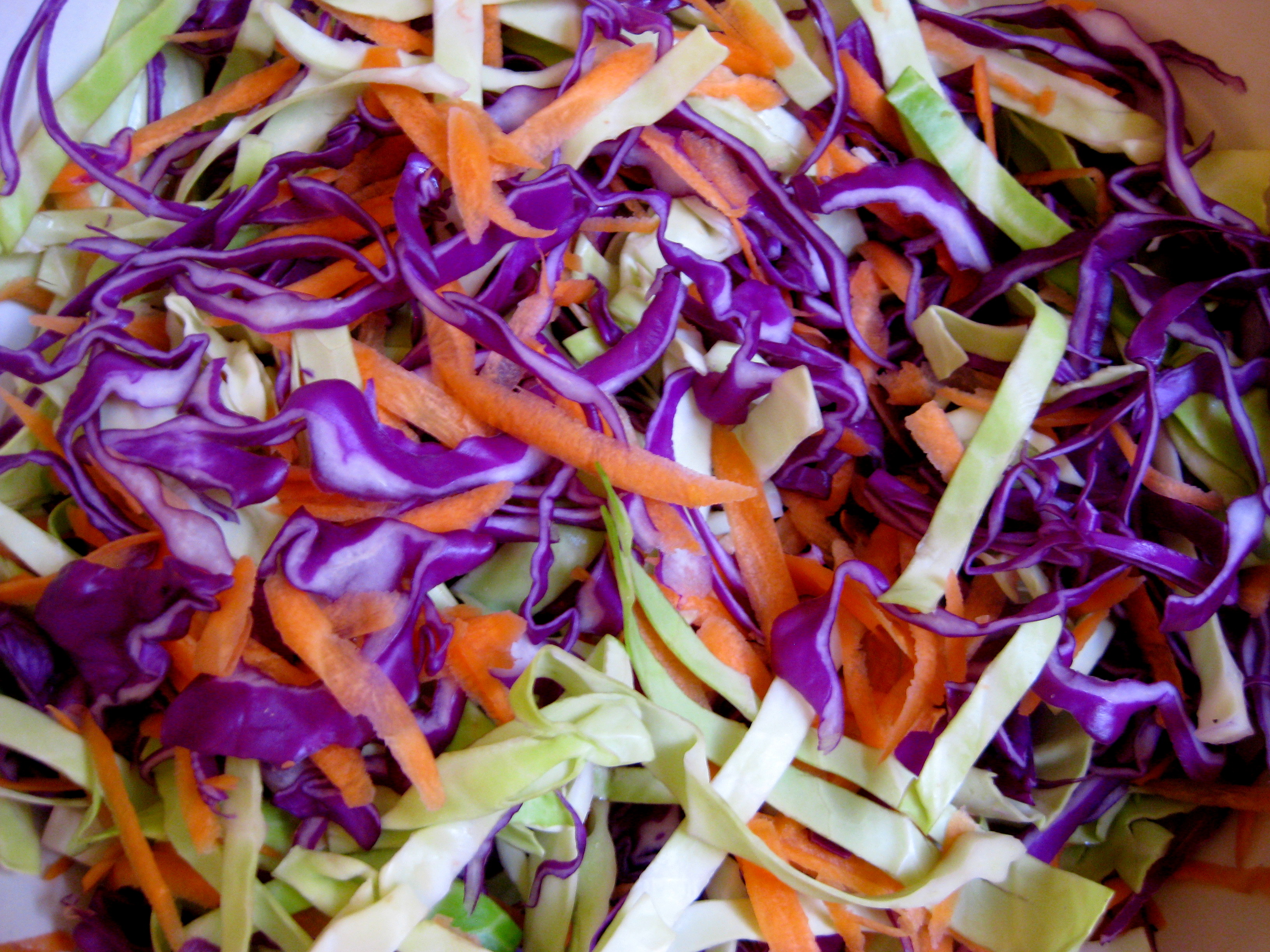 Coleslaw is one of those mad concoctions that has the rather unexpected capacity to blow your culinary socks off. It’s a riot of colours and textures, a positive festival of flavours. Homemade coleslaw is a world away from its commercial counterpart, which tends to be a damp and colourless collection of mystery vegetables swimming in a sort of mayonnaise soup. If you have the chance, it’s worth the extra effort.